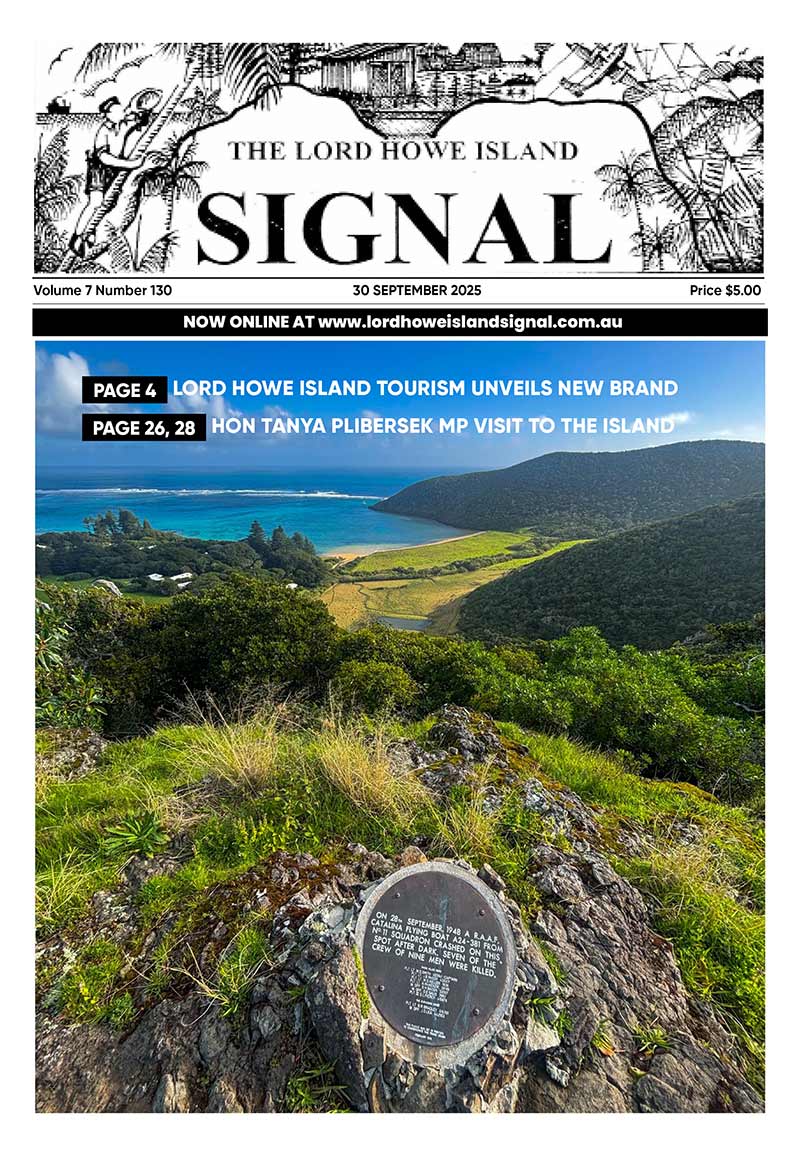 Purchase and download a digital copy of The Lord Howe Island Signal here. The Signal is a community newspaper and is designed and distributed from Lord Howe Island.