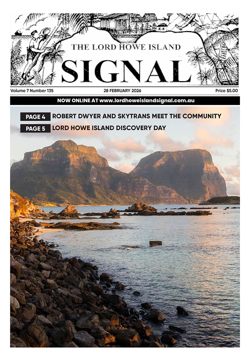Purchase and download a digital copy of The Lord Howe Island Signal here. The Signal is a community newspaper and is designed and distributed from Lord Howe Island.